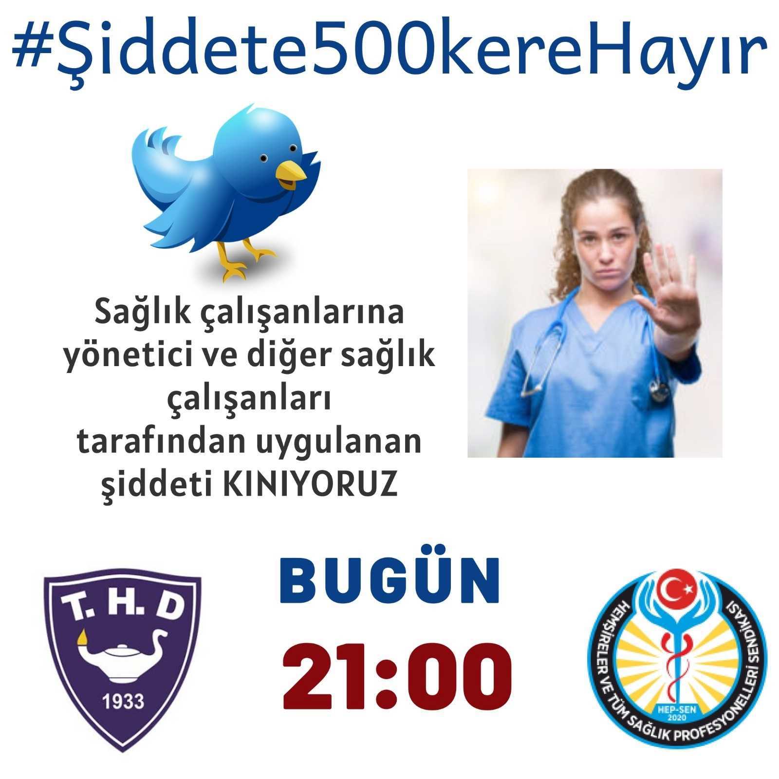 Şiddet hayatın ve sağlık camiasının genel ve çok büyük bir sorunu o yüzden HEP-SEN kuruluşu ve Türk Hemşireler Derneği ile beraber genel bir twitter çalışması yapacağız. Çalışma 21.00 da başlayacaktır.