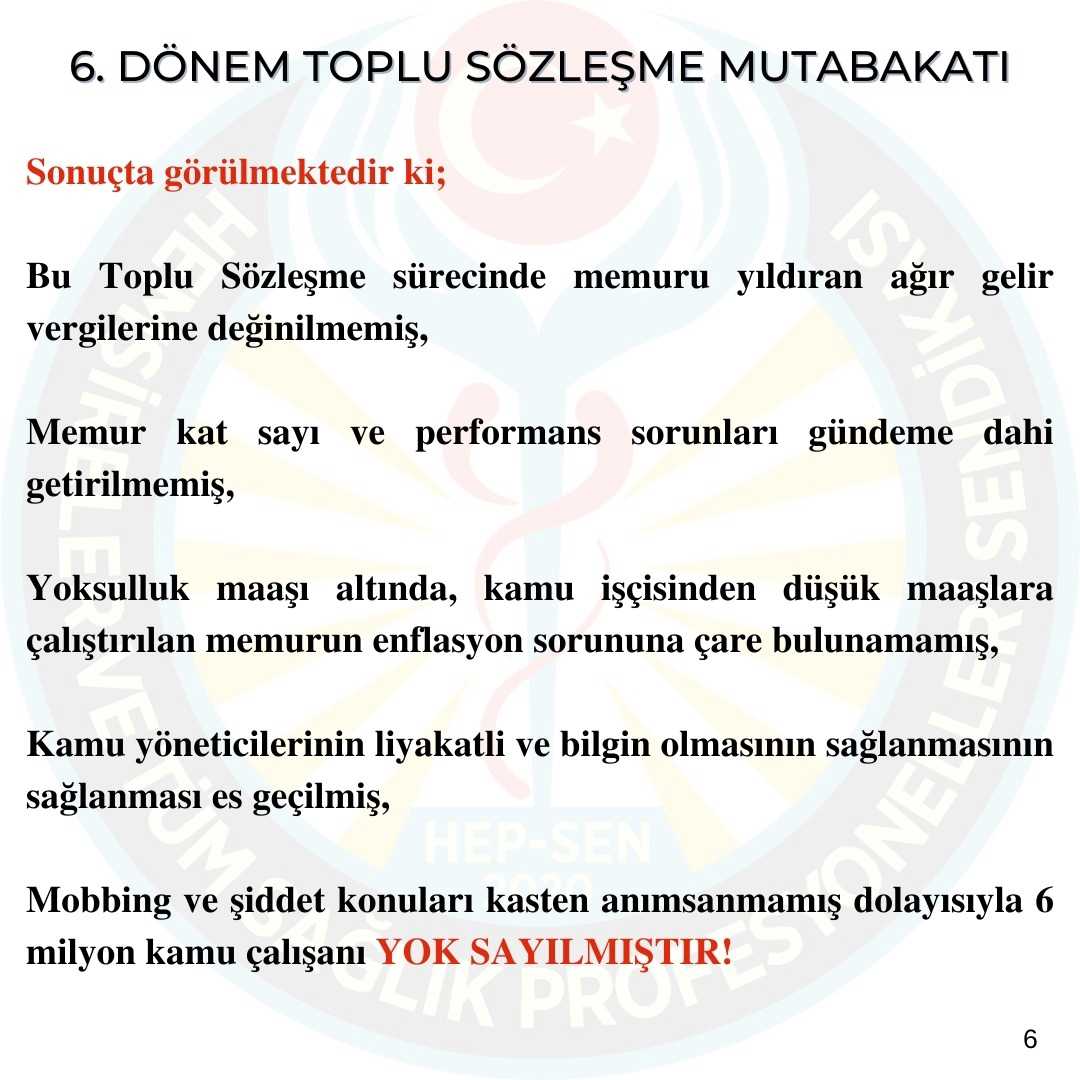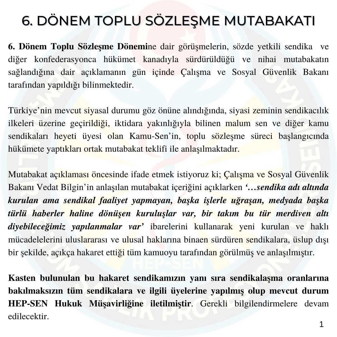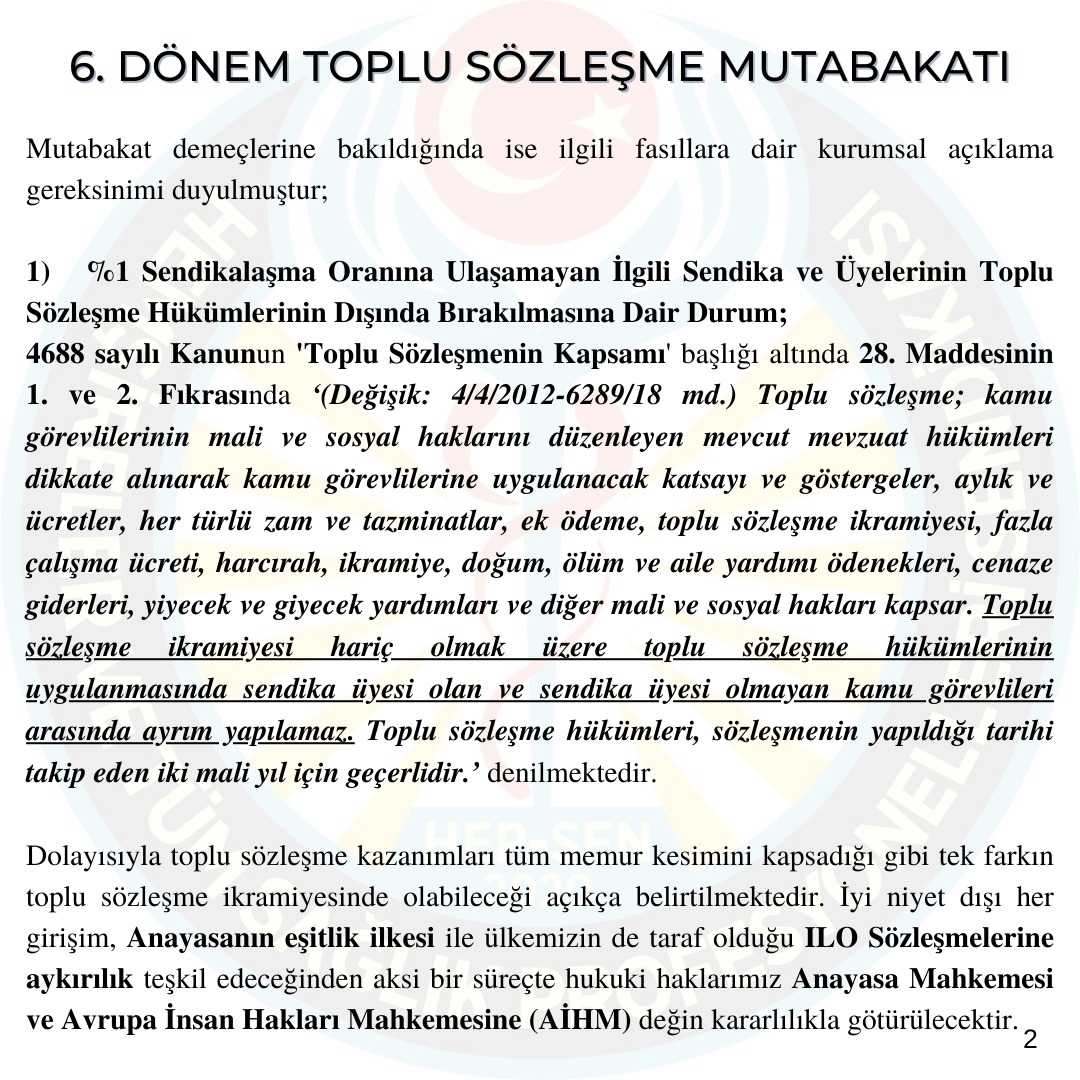 6. DÖNEM TOPLU SÖZLEŞME MUTABAKATINA DAİR AÇIKLAMA
