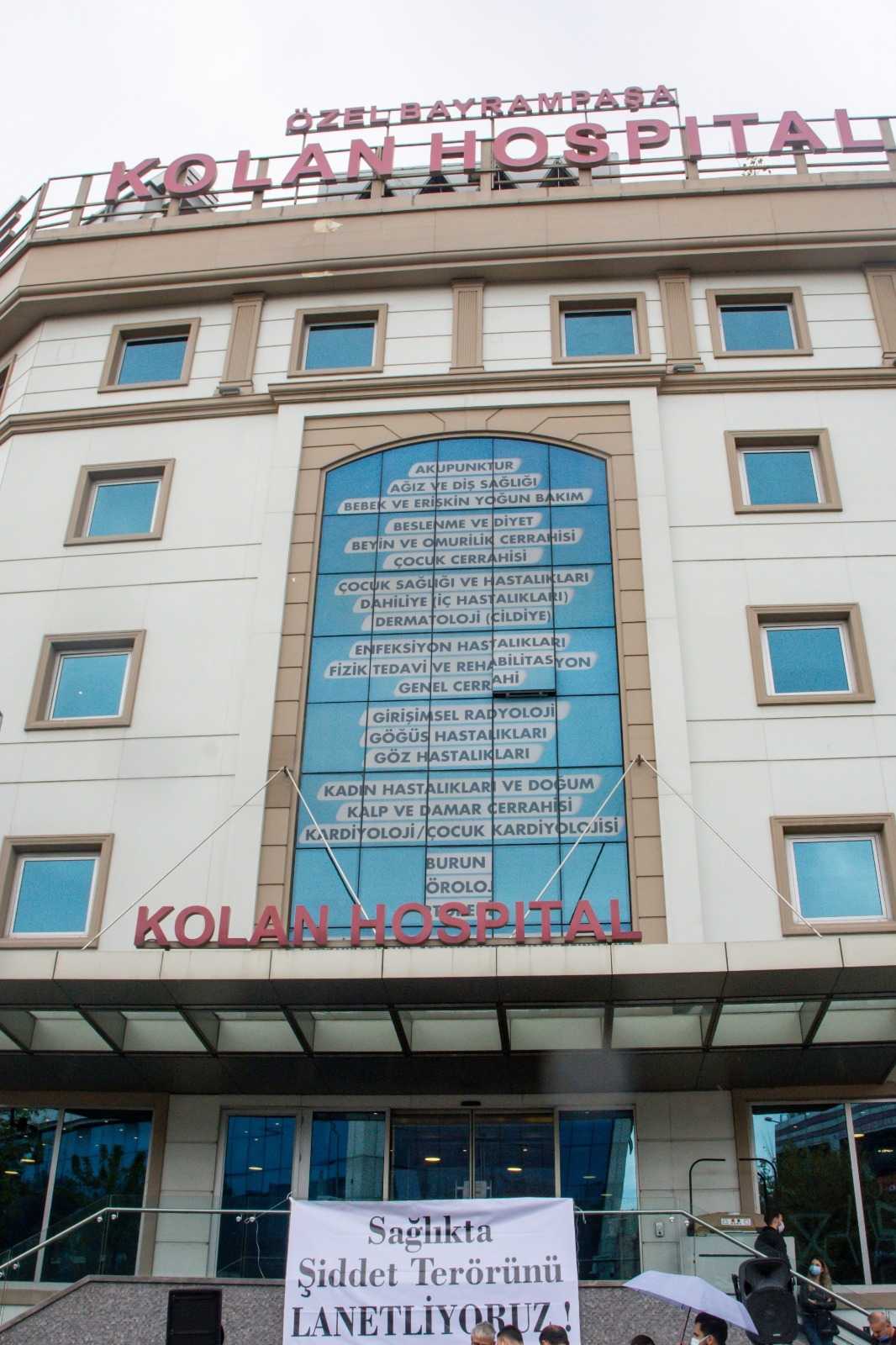 Bakım Hemşireleri Derneği (TYBH), POLMEDER Derneği ve Sağlık Hizmetleri Sendikası (Sahim-Sen), şiddet olayının gerçekleştiği hastanenin önünde ortak basın açıklaması yaptı. Basın açıklamasını Türk Hemşireler Derneği Genel Başkanı Sevilay Şenol Çelik ve HEP-SEN Genel Başkanı Yunus Şimşek okudu.