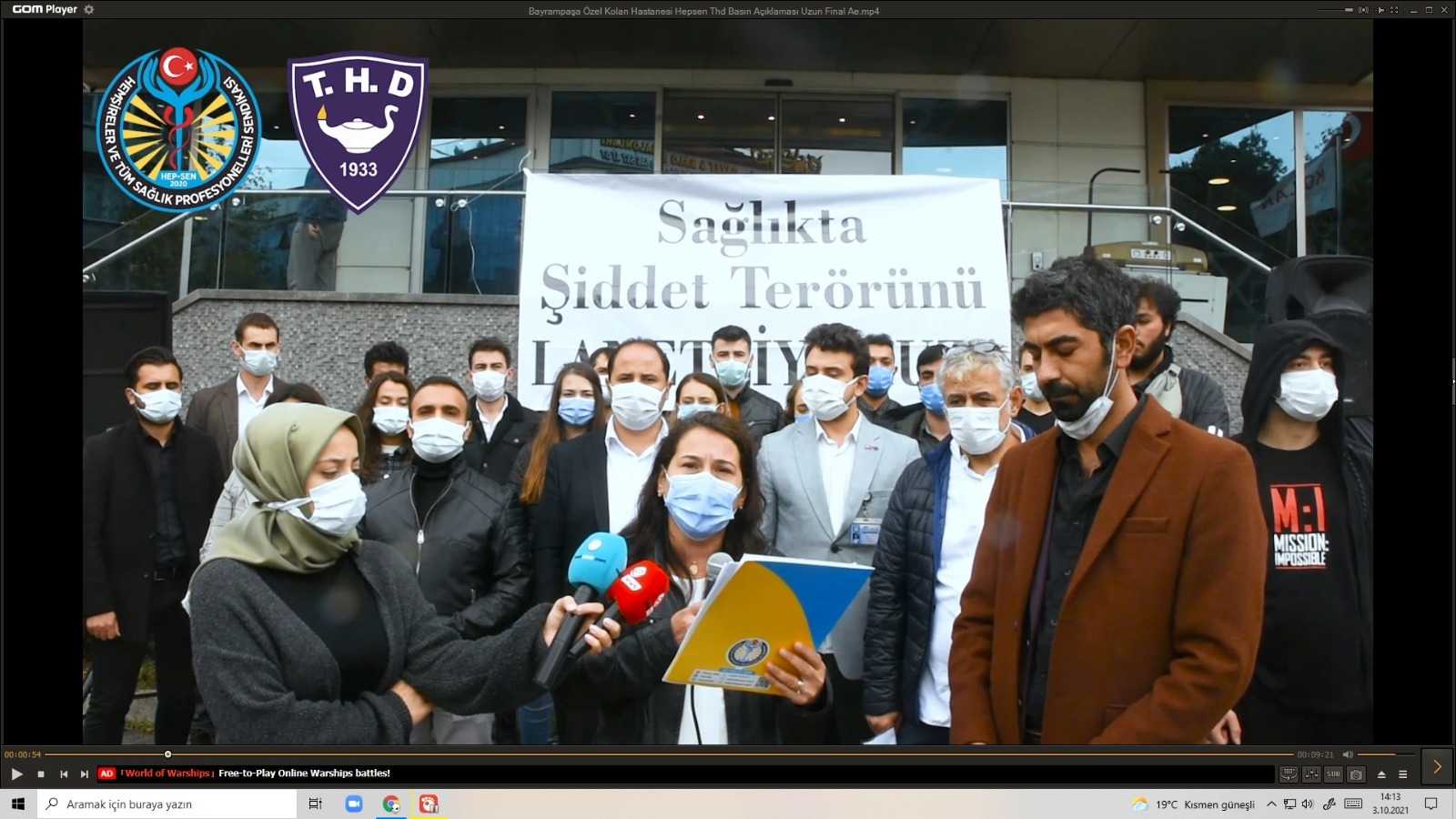 02.10.2021 tarihinde saat 15.00’de Sağlıkta Şiddet Terörüne Hayır! Temasıyla Türk Hemşireler Derneği (THD), Hemşireler ve Tüm Sağlık Profesyonelleri Sendikası (HEP-SEN), Türk Yoğun