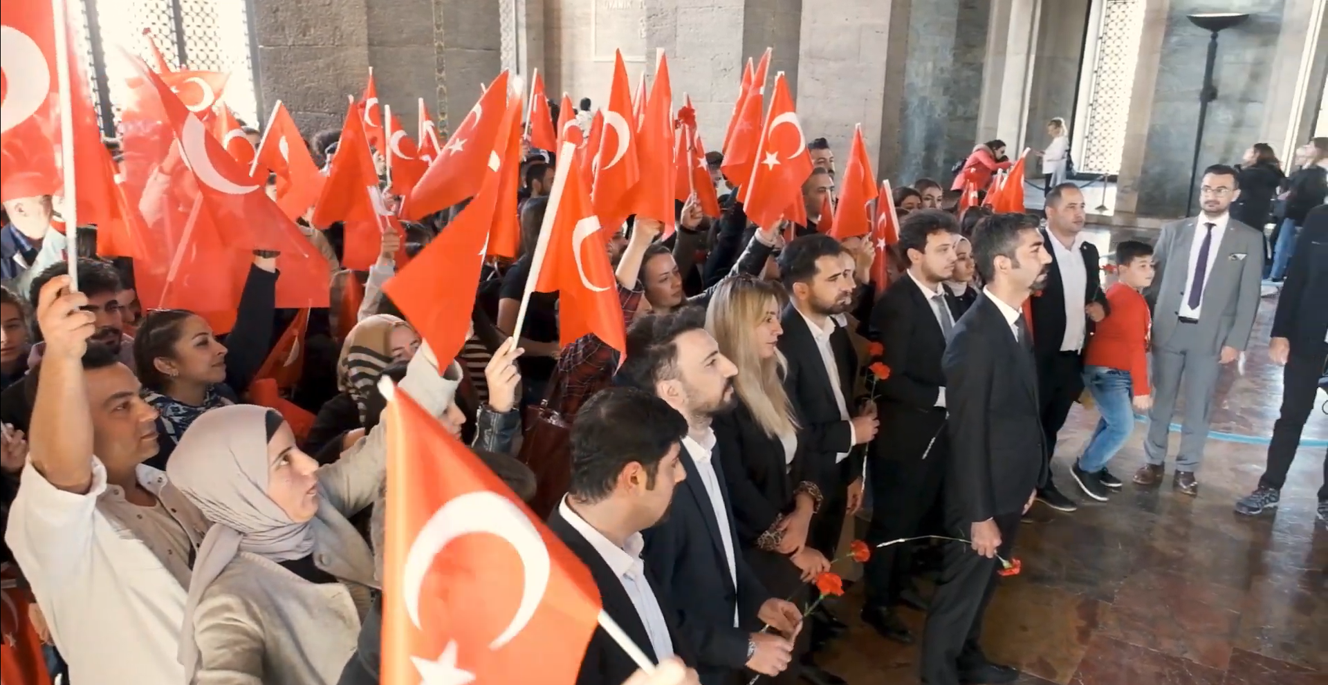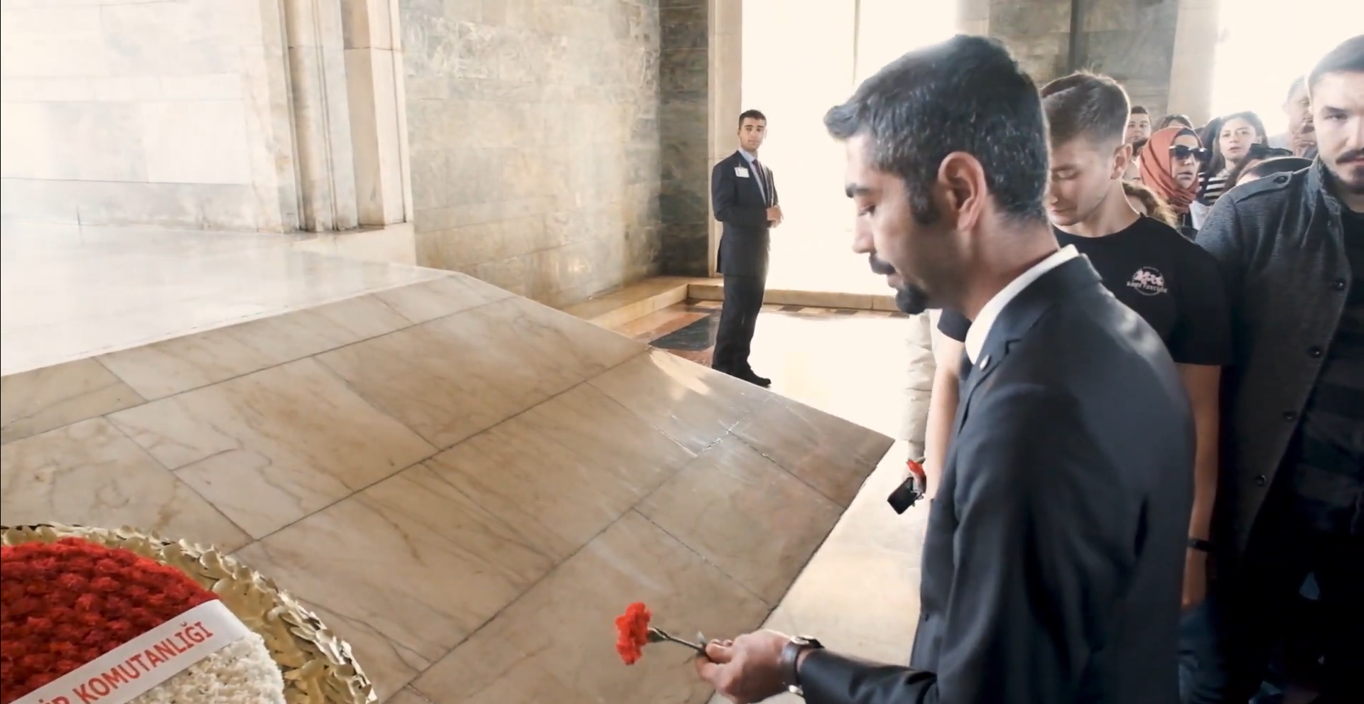 Anıtkabir'e ulaşıldıktan sonra ulu önderimiz Mustafa Kemal Atatürk'ün kabrinde bulunan çelenk alanına karanfiller bırakılarak saygı duruşunda bulunulmuştur.