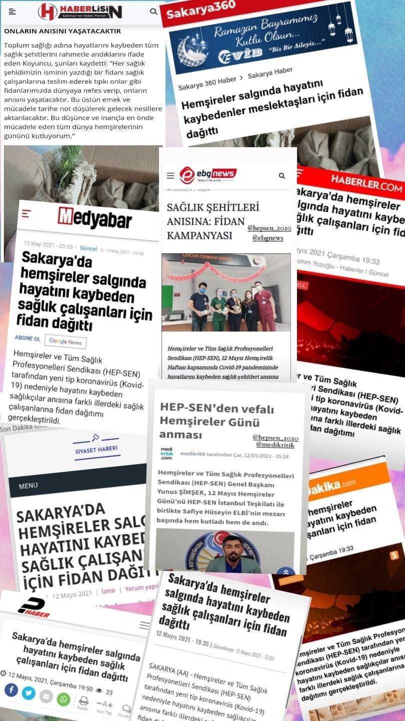 HEP-SEN Sakarya Yöneticisi Oğuz Koyuncu, yaptığı yazılı açıklamada, düzenledikleri "Nefes Alamadılar Tüm Dünyaya Nefes Vermek İçin" kampanyasıyla İstanbul başta olmak üzere İzmir ve Sakarya'daki sağlık kurum ve kuruluşlarında görevli sağlık çalışanlarına, üzerlerinde hayatını kaybeden sağlık çalışanlarının isimlerinin yazılı olduğu fidanları dağıttıklarını belirtti.