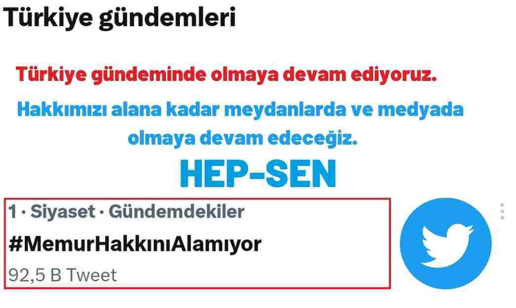 Hep-Sen ve Sağlık Çalışanları Sendikası öncülüğünde birçok STK ile birlikte yürütülen #MemurHakkınıAlamıyor hashtagli Twitter eylemimizde hem ülke hem de dünya gündemine çıkmış olup kamuoyu gündemi oluşturduk.