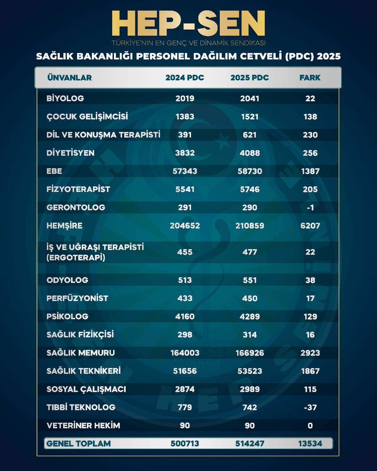 Unutulmamalıdır ki sağlık bir ekip işidir ve bu ekibin temel güvencesi adil, yeterli ve şeffaf bir kadro politikasıdır. Sağlık emekçileri sadece sayı değil, bu sistemin taşıyıcı direğidir. Personel Dağılım Cetveli bu sorumluluğu taşıyacak şekilde yeniden inşa edilmelidir.